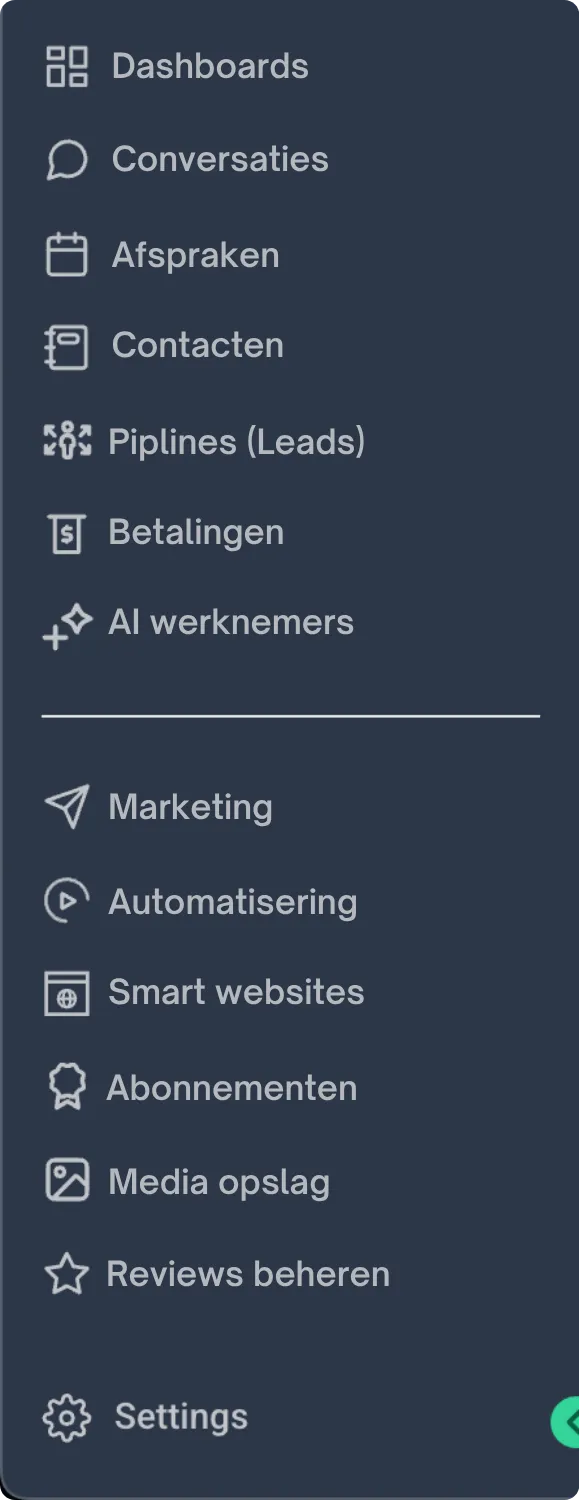 Beheer je website, funnels, e-mails, klantdata, workflows en meer — volledig gekoppeld en klaar om te schalen.